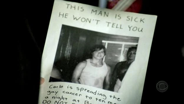 Valens and Jeffries speak to Barney. Barney says Jeff targeted Carlo. Jeff confronted him and lifted his shirt to show an AIDS lesion. He tells him he is sick and spreading it around. Jeff had made flyers with Carlo's face stating he had AIDS.