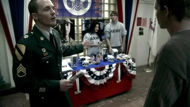 Valens and Rush meet with Mike’s CO, Sergeant Gomez. He says Mike worked on getting students into the Delayed Entry Program during the Iraq War, which was unpopular. Gomez says Mike was distant before he was killed. Miller and Jeffries meet with Mike’s widow Kristen who also said her husband was distant before he died. She remembers a knock on the door during the middle of the night. A girl named Victoria entered the apartment and said her stepdad was going to kill her. Kristen tells the detectives she was worried that Victoria’s dad would kill Mike since he intervened in their family drama often. Valens and Rush meet with Victoria who became a soldier and now works at the recruiting office. Victoria says her stepdad loved having Mike at the house since he was a hero and that her mother wanted half of Victoria's $20,000 signing bonus. Victoria remembers when Mike tried to convince high school students to sign on with the Army at a school event. The father of a recruit named Kevin told Mike to stay away from his son. Victoria says Kevin enlisted and was killed in Iraq. Later, Valens reports that Kevin’s father Jerry Harkin went on a crime spree after his son was killed.